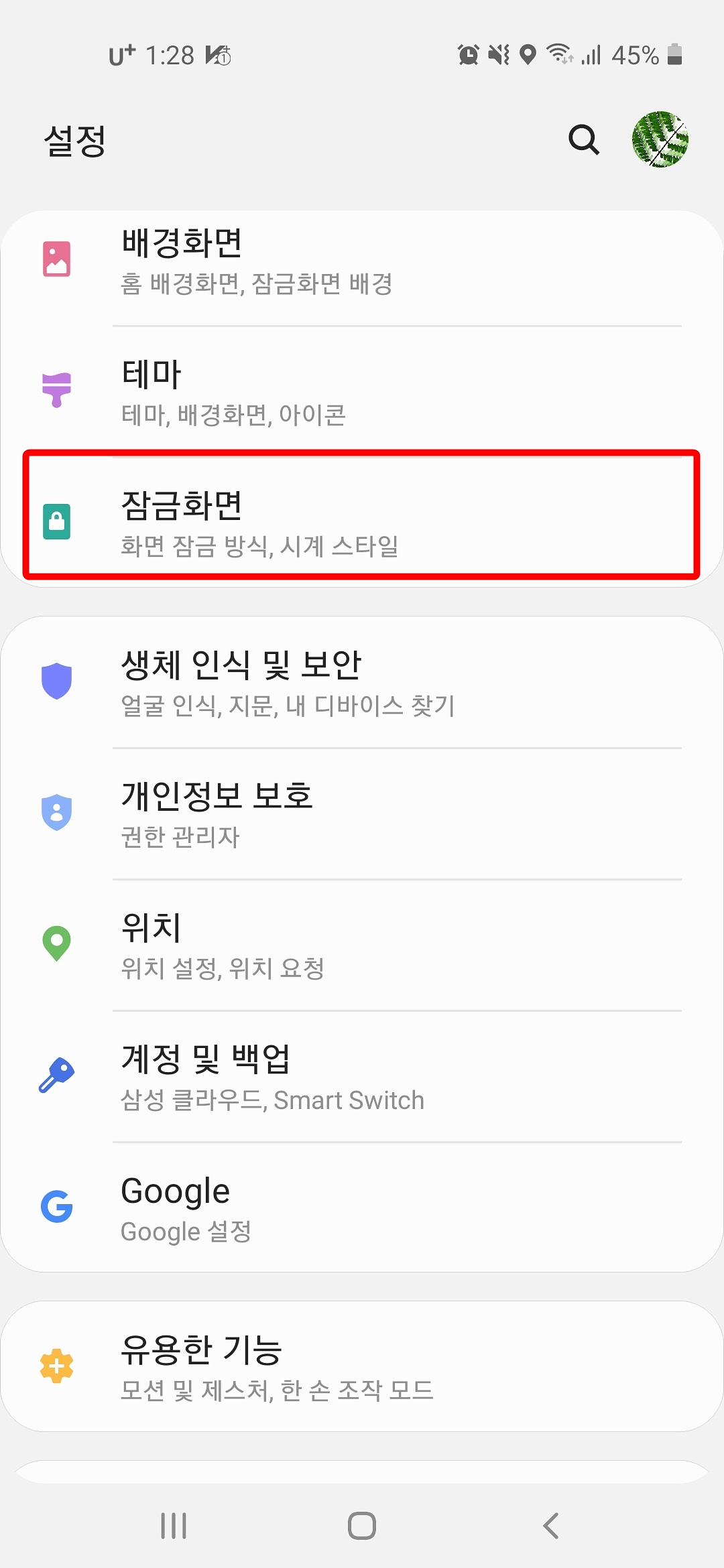 2. "잠금화면"을 누릅니다.