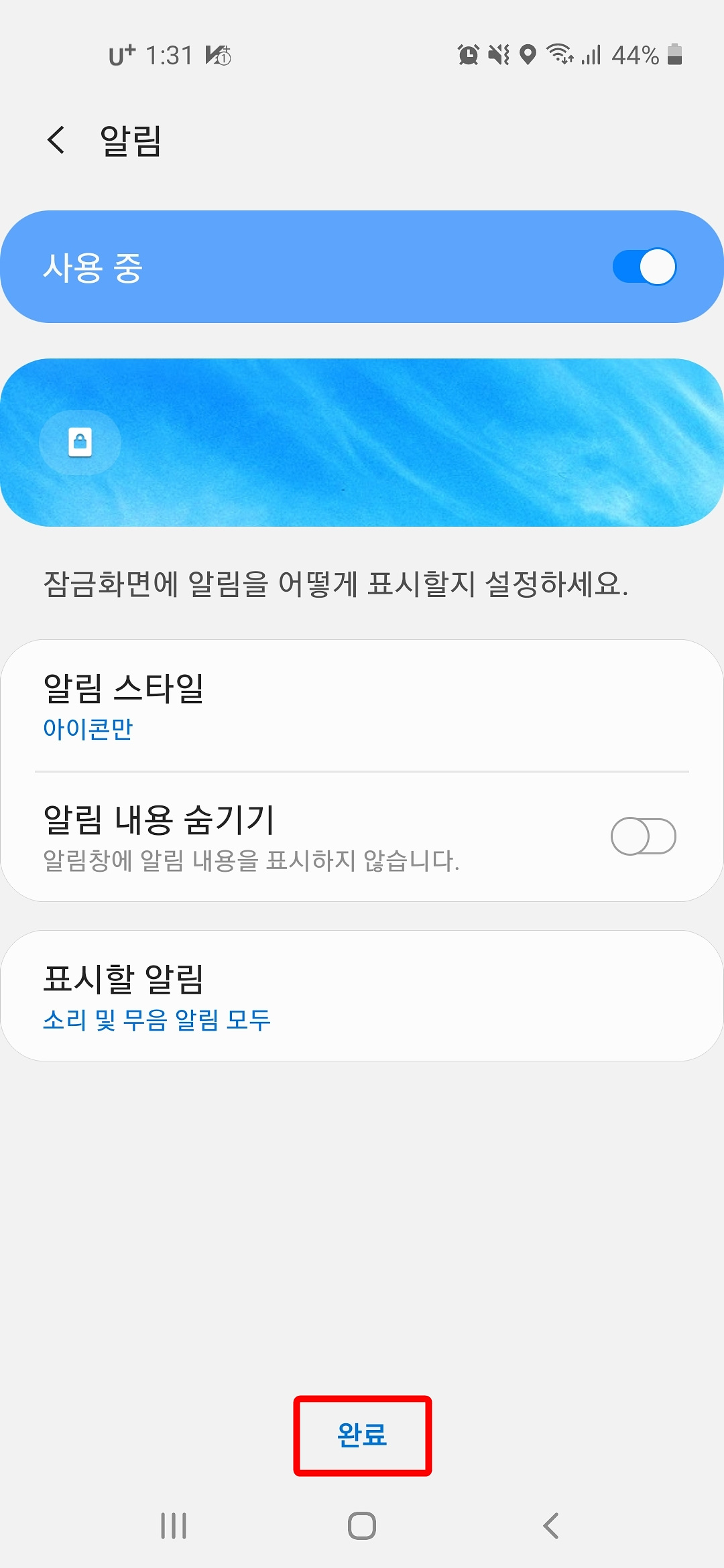 5. 알림 설정을 하고 "완료" 버튼을 누릅니다.