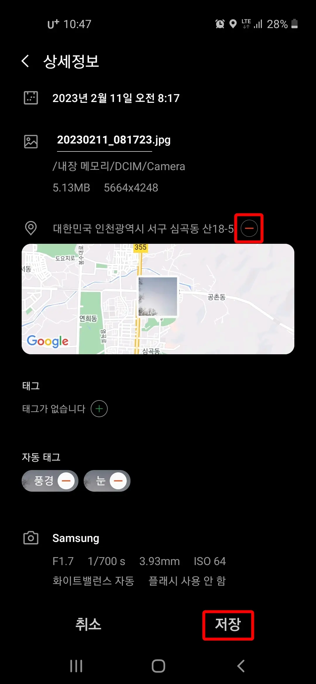 갤럭시 사진의 위치정보 표시 및 확인, 삭제하는 방법