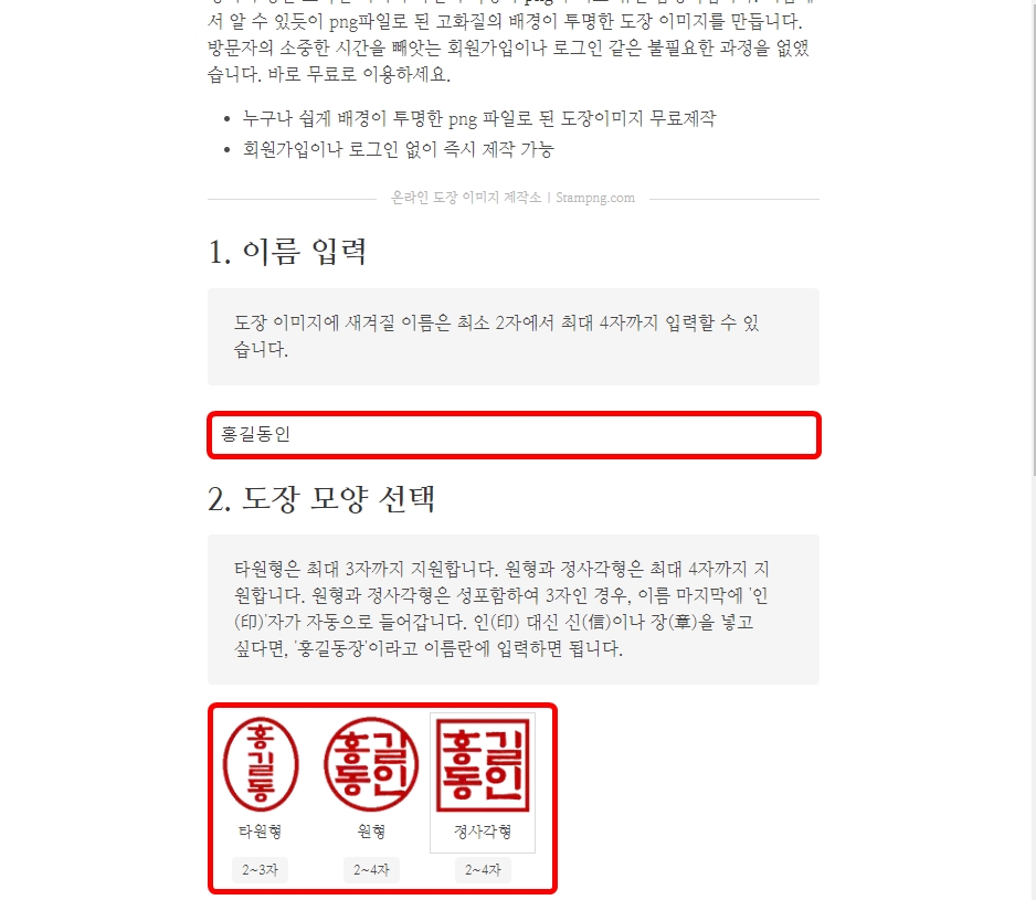 회원가입 없이 무료로 인터넷 도장 만들기