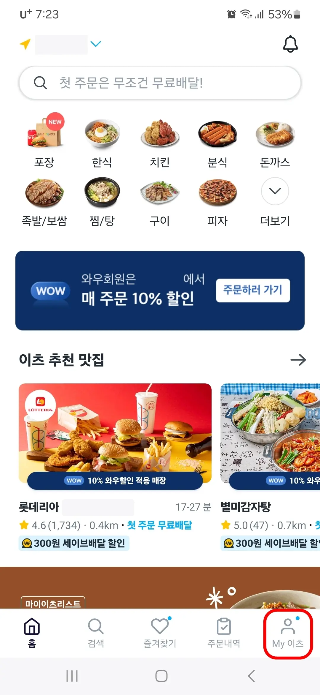 5) 진행 중인 이벤트(첫 주문 무료배달 혜택 등)