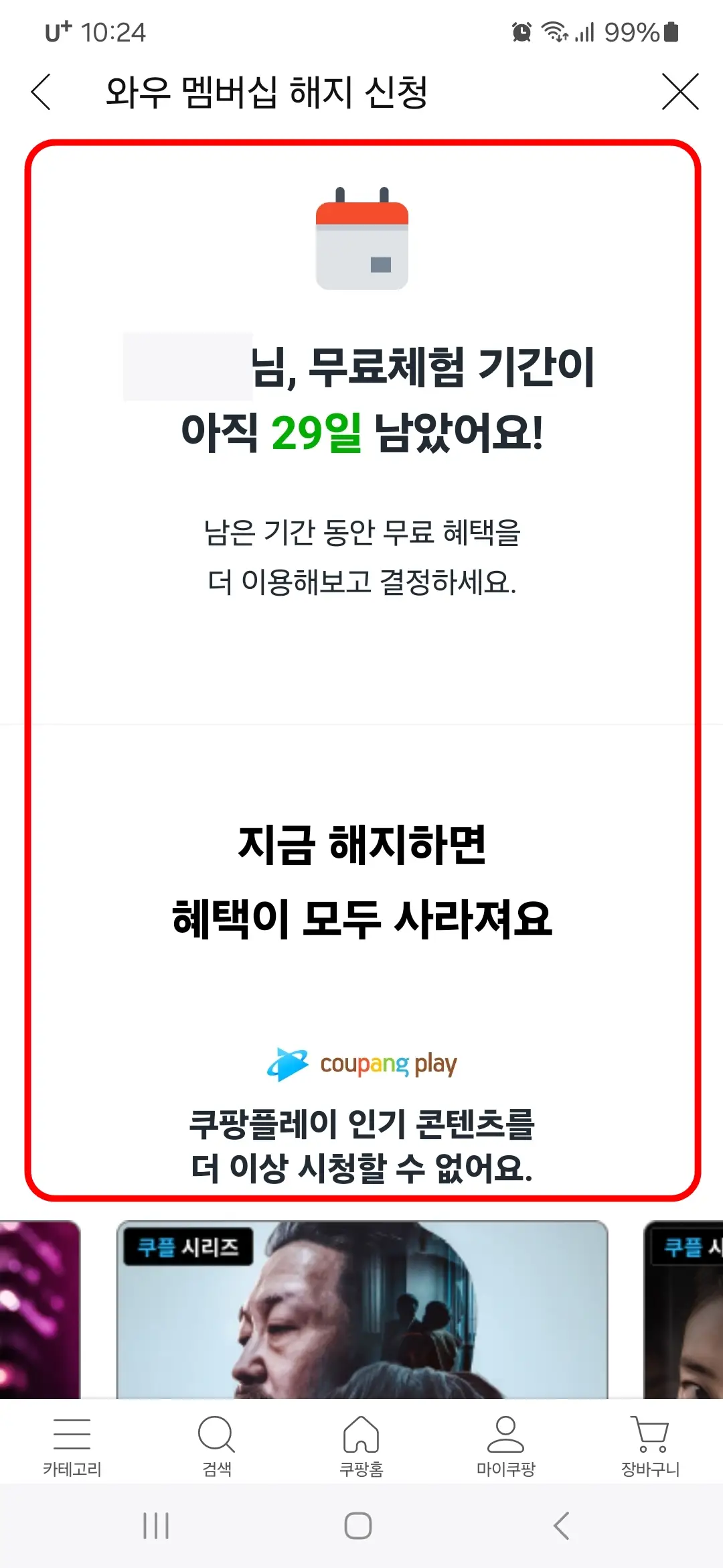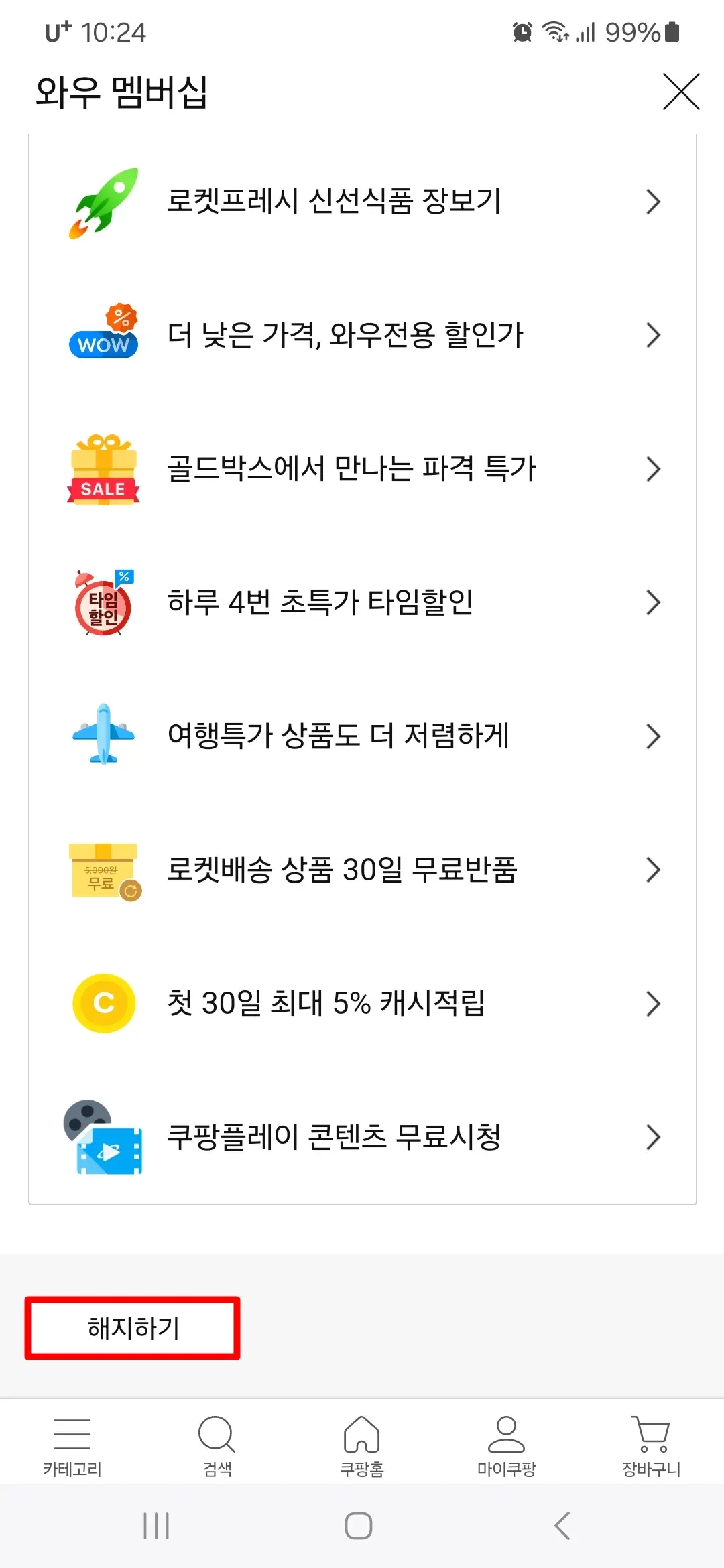 쿠팡 와우 멤버십 및 한달 무료체험 해지하기