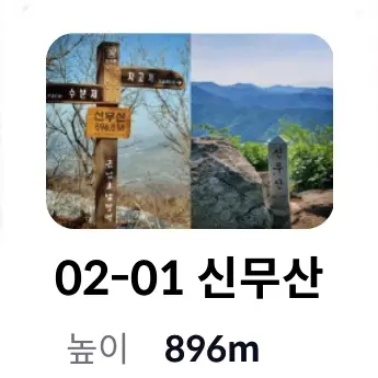 | 4 | 02-01 신무산 | 정상석, 이정목 | 896 | 전북 장수군 장수읍 수분리 | ||