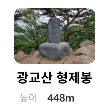 | 9 | 광교산 형제봉 | 형제봉 정상석 | 448m | 경기도 용인시 수지구 신봉동 | |