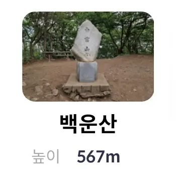 | 7 | 백운산 | 백운산 정상석 | 567m | 경기도 의왕시 왕곡동 | |