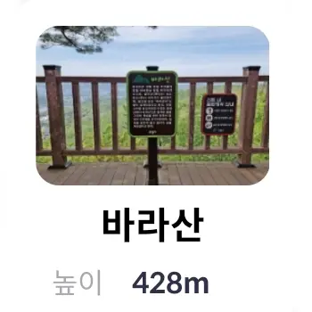 | 6 | 바라산 | 바라산 안내판 | 428m | 경기도 용인시 수지구 고기동 | |