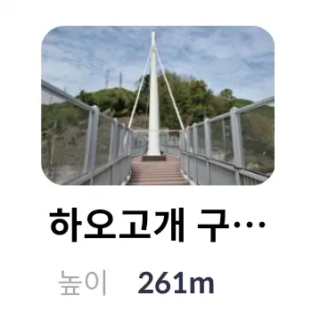 | 5 | 하오고개 구름다리 | 하오고개 구름다리 | 261m | 경기도 의왕시 청계동 | |