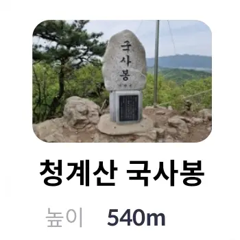 | 4 | 청계산 국사봉 | 청계산 국사봉 | 540m | 경기도 성남시 수정구 금토동 | |