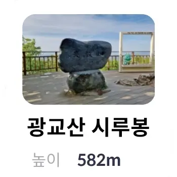 | 8 | 광교산 시루봉 | 시루봉 정상석 | 582m | 경기도 용인시 수지구 고기동 | |