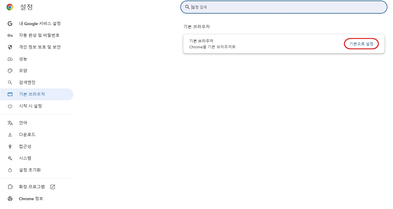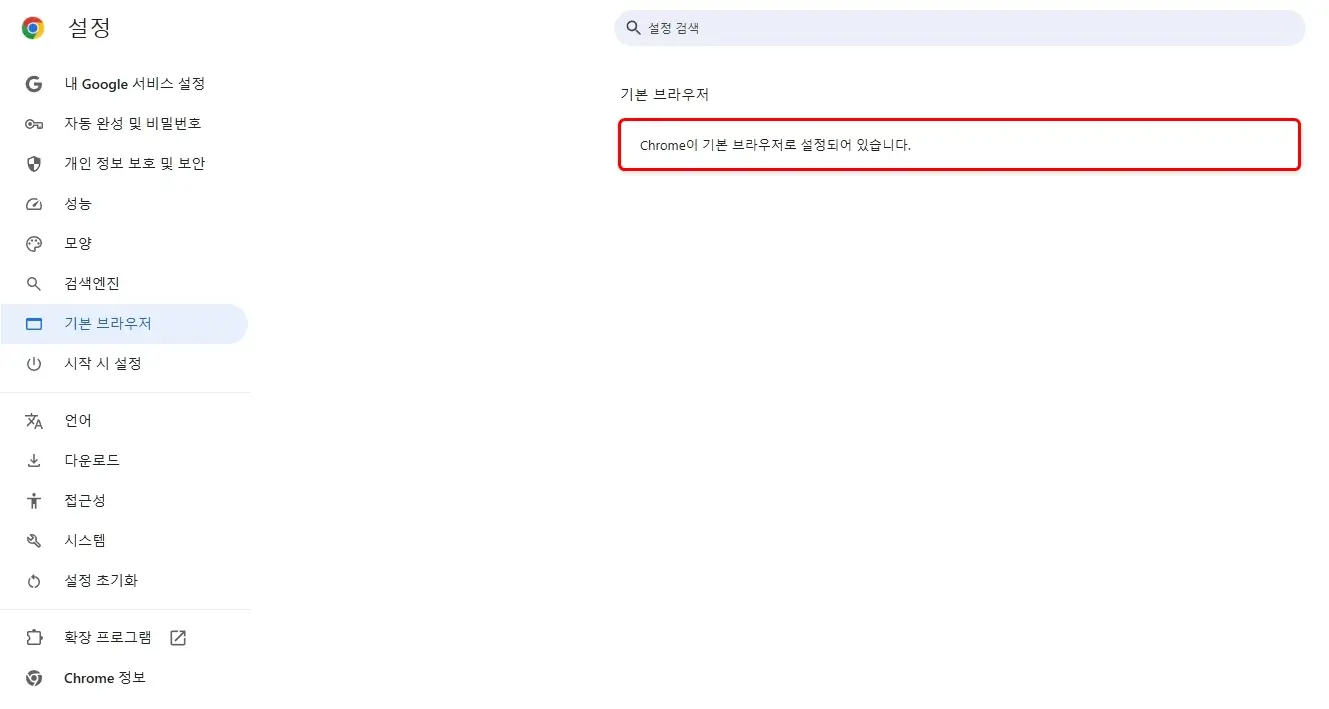 구글 크롬 브라우저에서 기본 브라우저로 변경하기