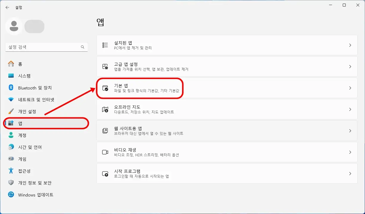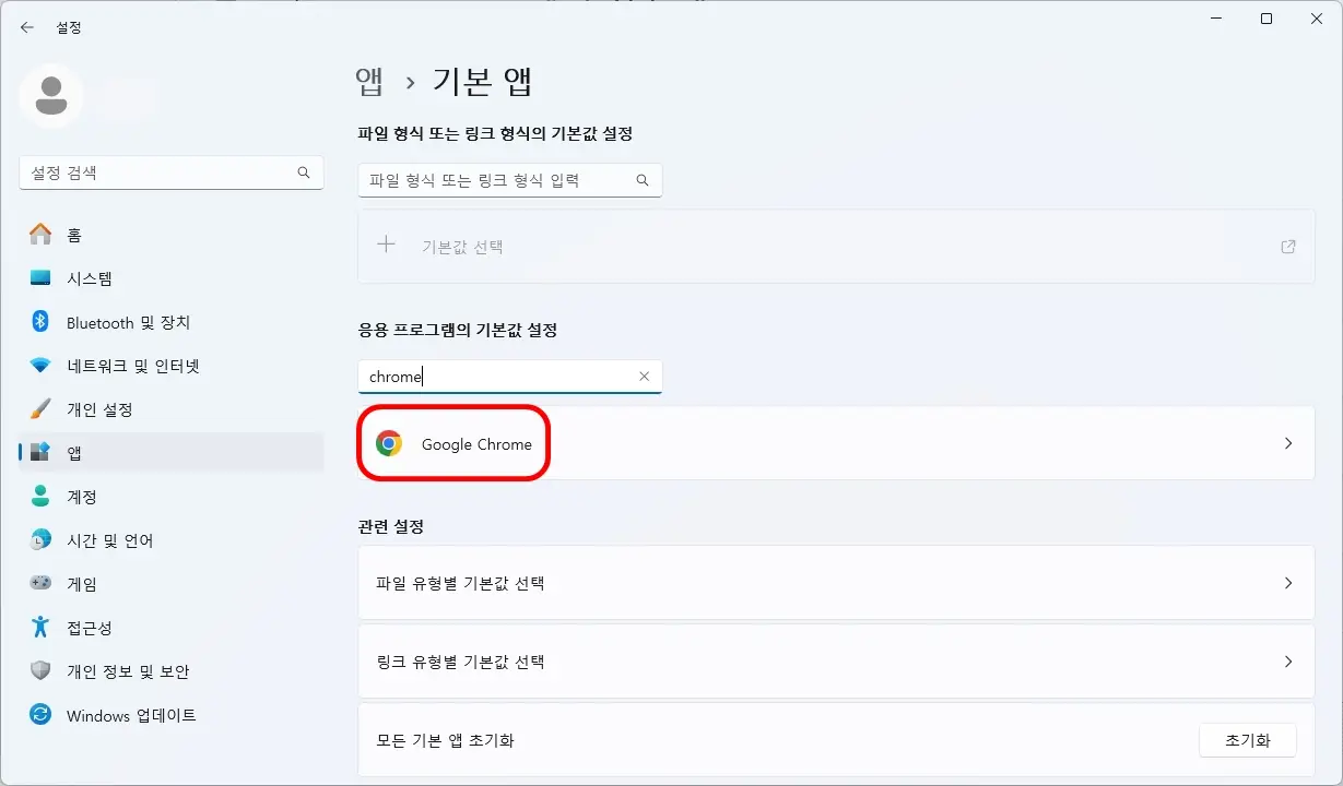 윈도우 11의 설정에서 기본 브라우저 변경하기