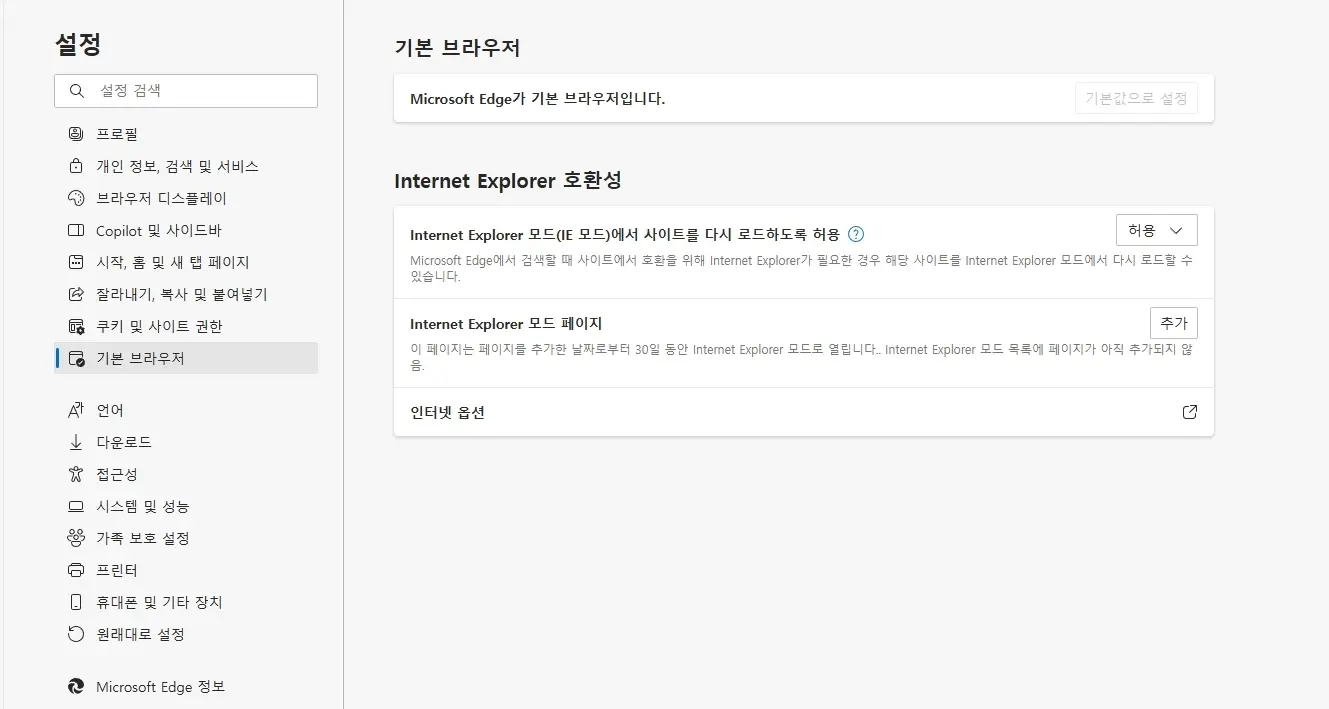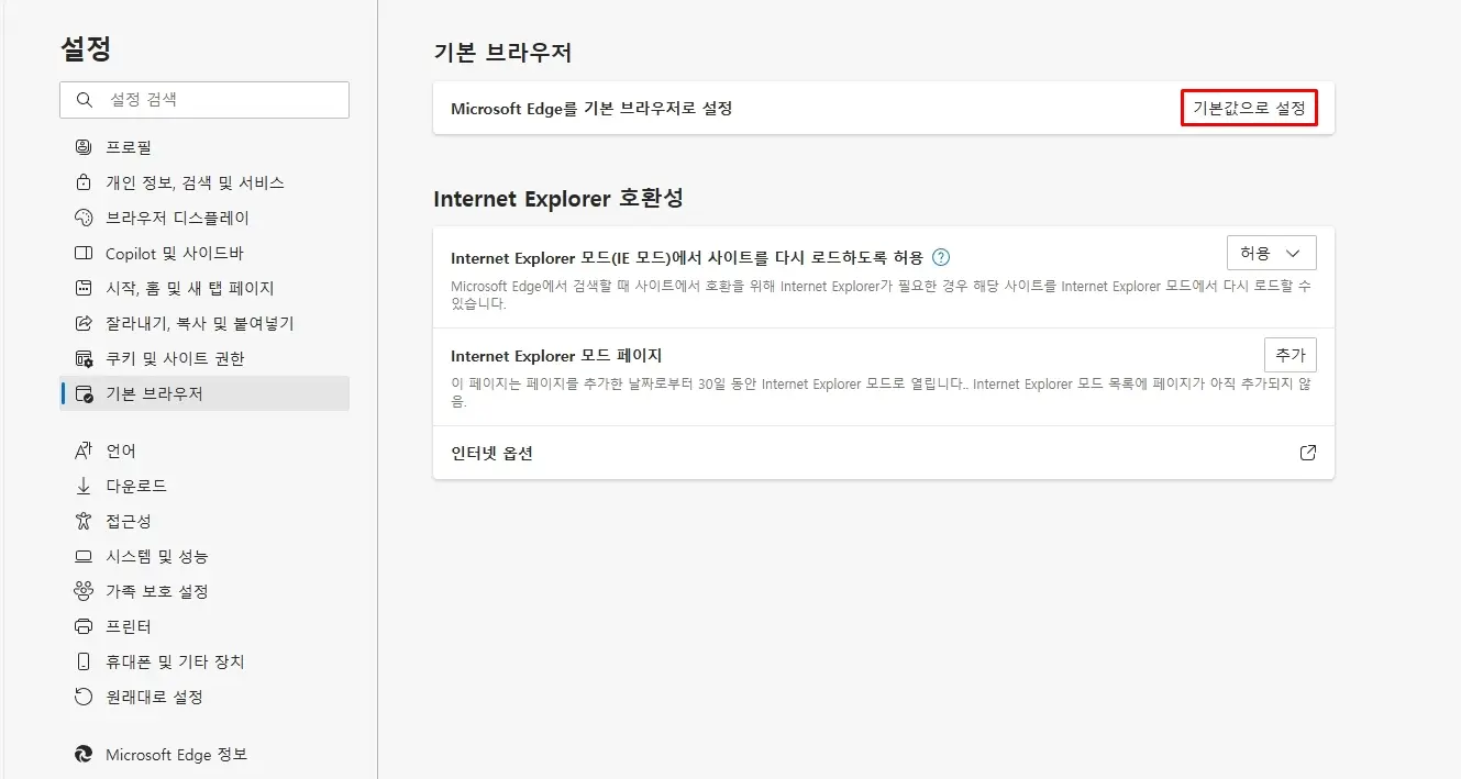 마이크로소프트 엣지 브라우저에서 기본 브라우저로 변경하기