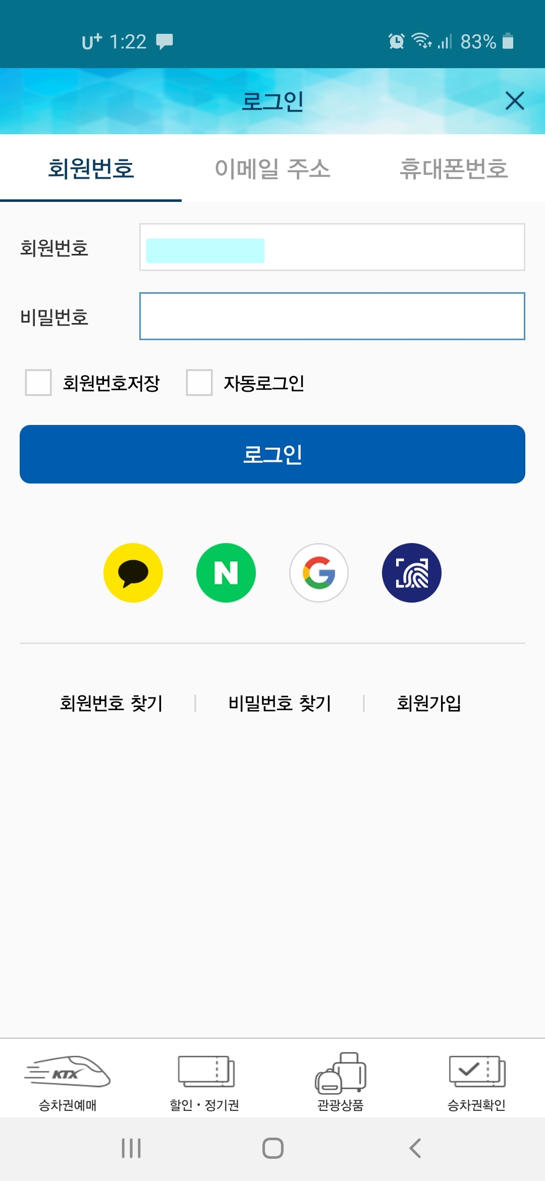 코레일톡으로 멤버십번호 찾기