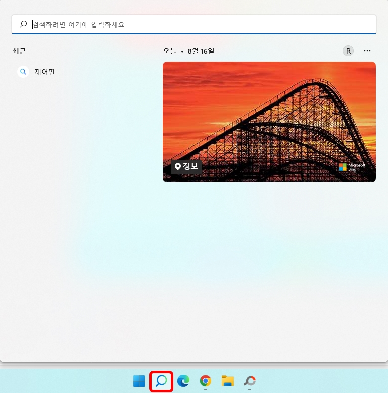 1. 작업표시줄의 '검색' 아이콘을 클릭합니다.