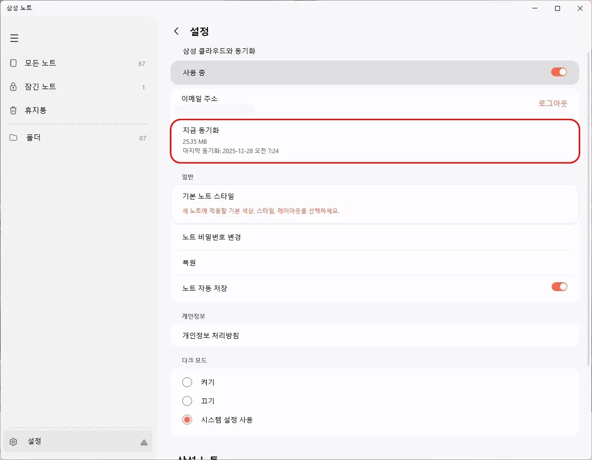 8. 삼성 노트 동기화가 모두 완료되었습니다.
