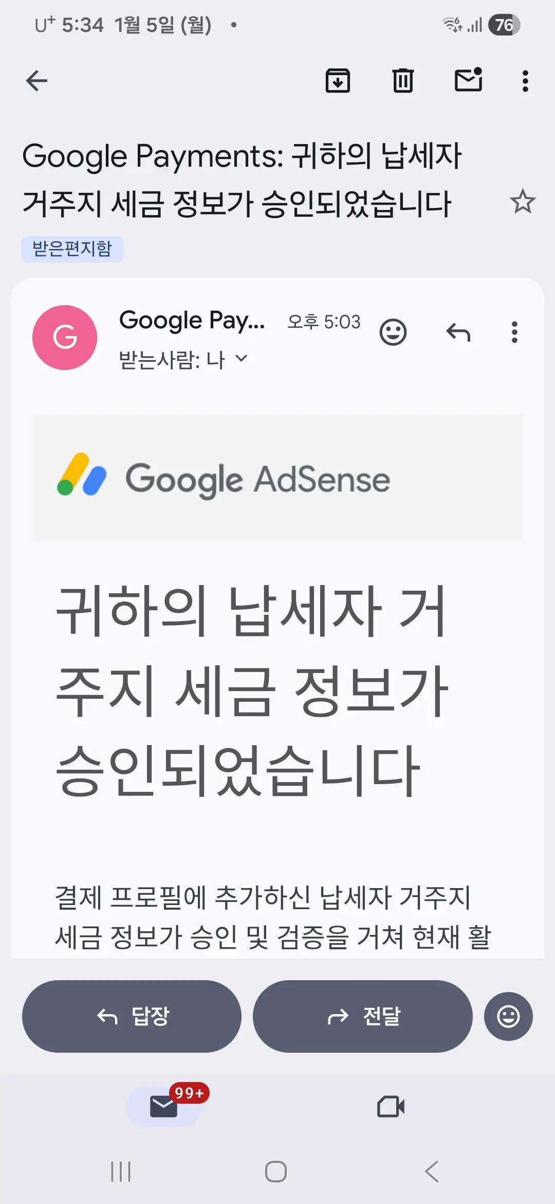 6. 2026년 1월 5일에 납세자 거주지 세금정보가 승인되었다는 메일을 받았습니다.